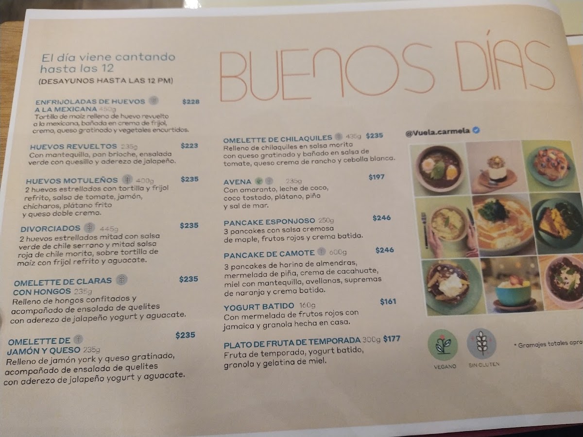 Vuela Carmela Menu
